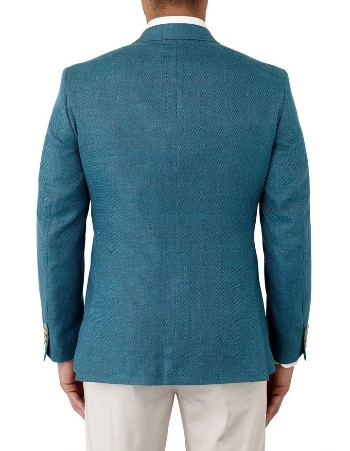 A raised textured twill construction with a polished finish in a teal colour. A unique jacket that would be a wonderful addition to any wardrobe. Can be worn with stone, grey, navy or blue trousers/chinos a perfect summer evening jacket for any occasion. Also available in Blue