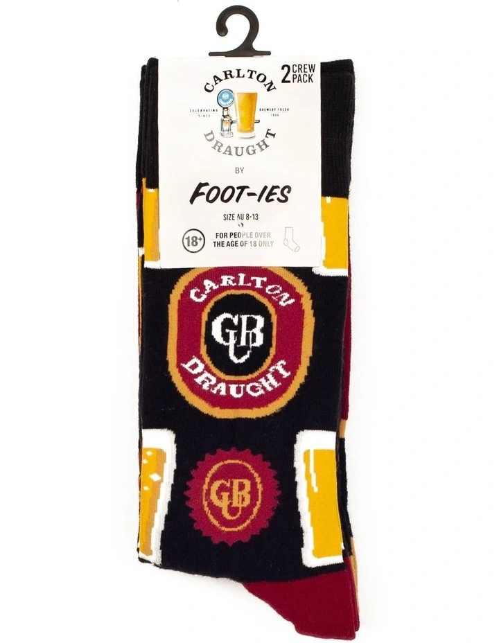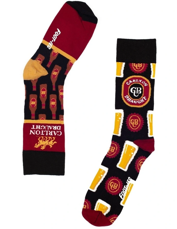 Foot-ies use a premium blend of cotton, polyamide and elastane fabrication with a market leading 200 needle construction. This ensures they maintain their comfort, fit and colour and also allows for detailed graphics of your favourite beer brands!