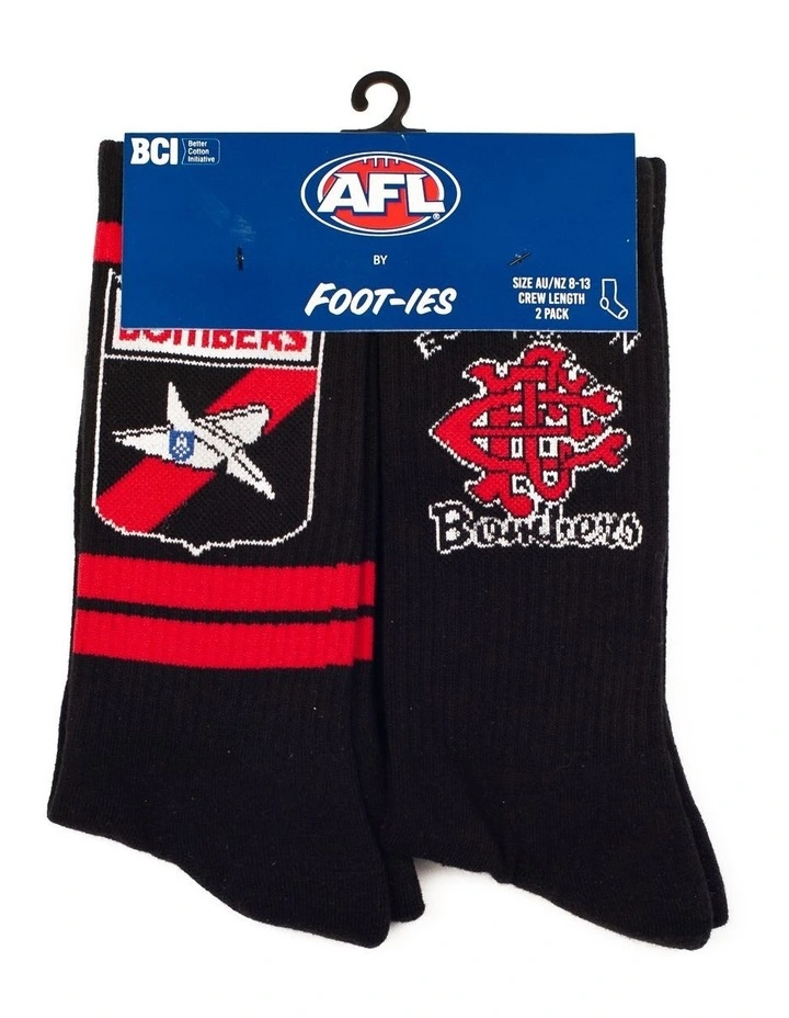 Officially licensed by the AFL, the 2 pack Sneaker Sock is the ultimate fusion sock, mixing street design cues with technical sport sock function in your favourite Essendon Bombers team colours. Designed to be worn everyday with sneakers this sock is engineered to fit the contours of your foot with extra padding in the heel and forefoot. Made from a careful blend of 68% cotton, 25% polyester and 7% elastane in a crew length fit. For best results warm machine wash to keep your team colours vibrant!