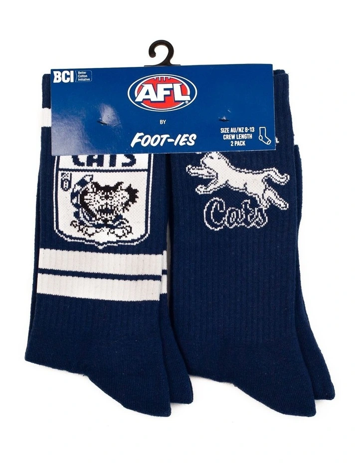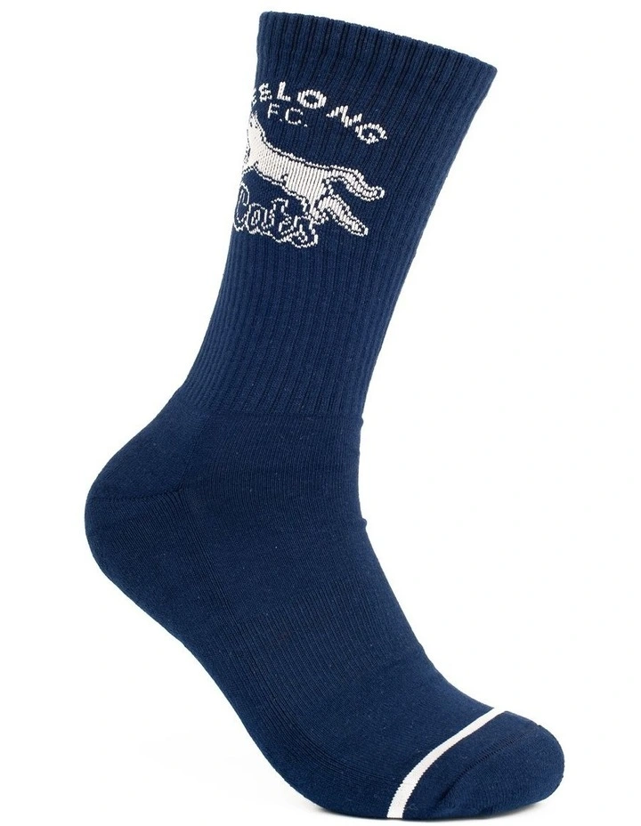 Officially licensed by the AFL, the 2 pack Sneaker Sock is the ultimate fusion sock, mixing street design cues with technical sport sock function in your favourite Geelong Cats team colours. Designed to be worn everyday with sneakers this sock is engineered to fit the contours of your foot with extra padding in the heel and forefoot. For best results warm machine wash to keep your team colours vibrant!