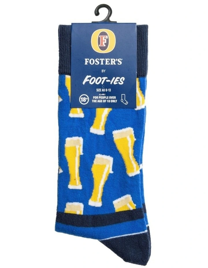 Nothing is more iconic than a Fosters and we loved using the brand colours to bring this exclusive collection to life. Foot-ies use a premium blend of cotton, polyamide and elastane fabrication with a market leading 200 needle construction. This ensures they maintain their comfort, fit and colour and also allows for detailed graphics of your favourite beer! This sock is a mid rise crew sock with comfort heal gusset to ensure the perfect fit. Australian owned and designed in Melbourne. Warm machine wash for best results to keep your colours vibrant! For people over the age of 18