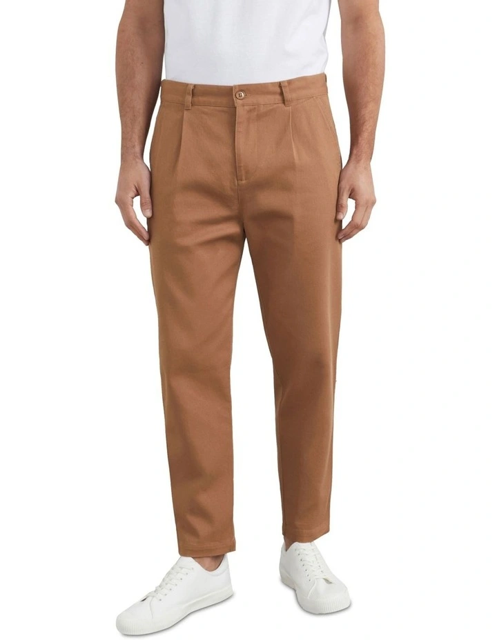 Our Tapered Cropped Pant is a sleek new season fit. Featuring pleats at the front and flap pockets at the back, this pant offers a relaxed tapered look with a cropped leg and belt hooks. Made from a great stretch twill fabric for comfort and movement. Wear with our Trucker Jacket and Logo Baseball Cap. Model wearing our Stone colourway wears a size 32. He usually wears a standard 32 and is 188cm tall.Model Wearing our French Navy colourway wears a size 32. He usually wears a standard 32 and is 185cm tall.