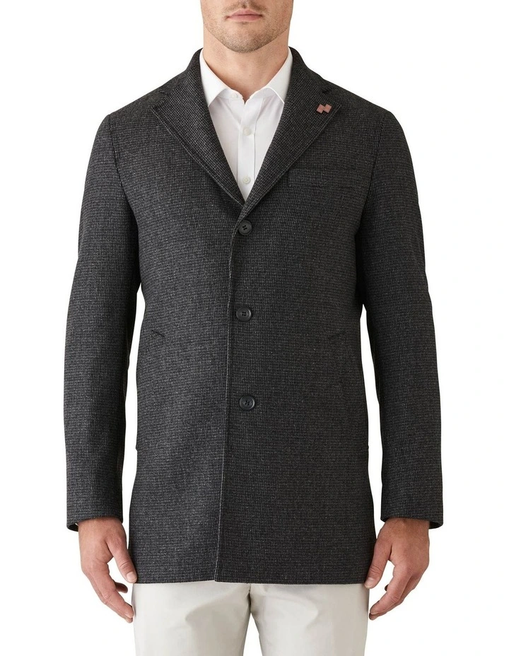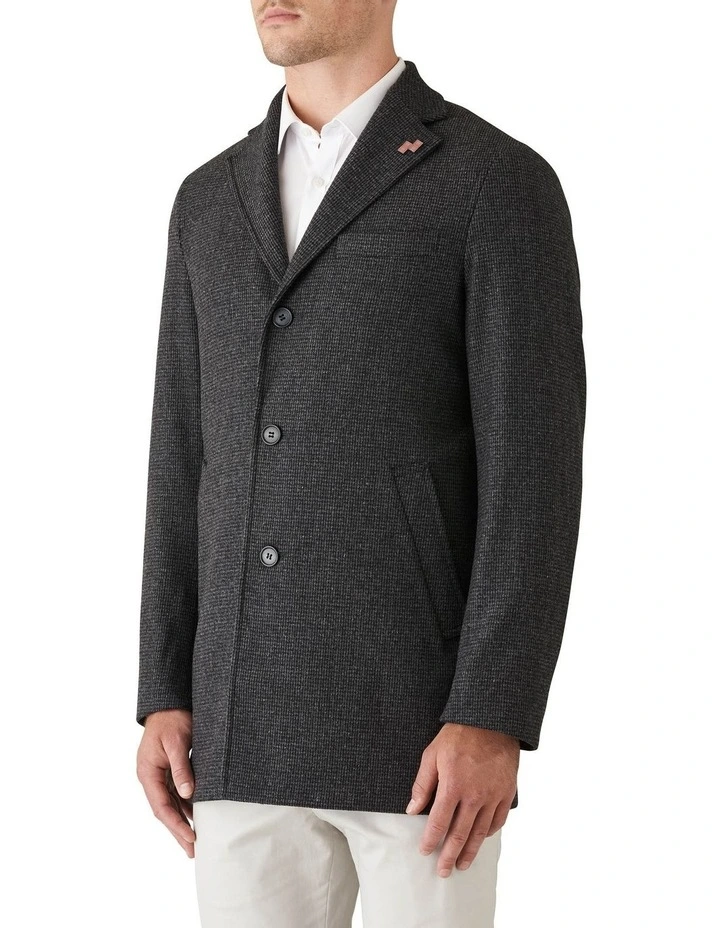 This slim fit Mercury Overcoat in a textured houndstooth Italian made check fabric is a classic piece for your wardrobe. Pair back with your favourite suit, shirt and tie to give your look that extra style and sophistication on your commute to the office or to your next formal event. Designed in Australia.