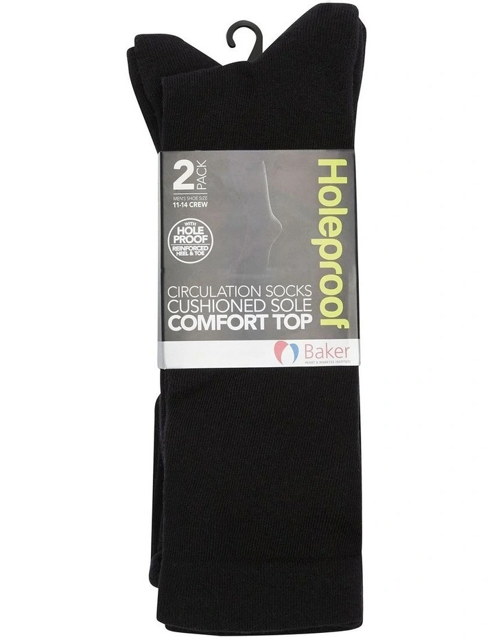 The Holeproof Comfort Top Circulation 2 Pack Socks are a cotton rich sock that provide an uninterrupted blood flow. These circulation sock are endorsed by the Baker Heart & Diabetes Institute.
