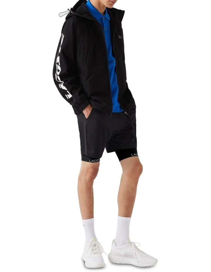 Contrast graphics. Mesh print. Functional, durable, water-repellent. For both on and off the court.