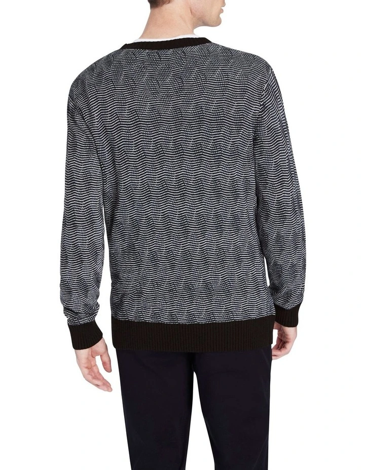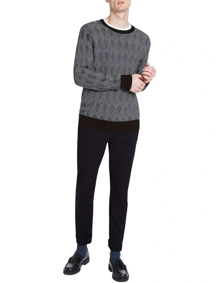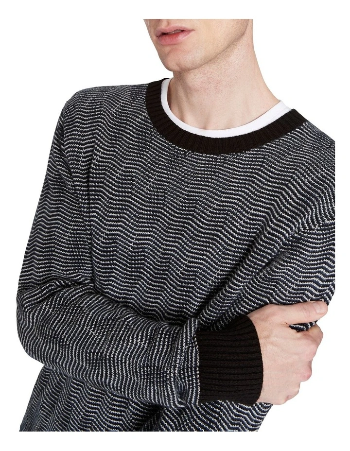 Creating a lightweight look perfect for layering, this long sleeve sweater plays with texture as it reveals a mesmerising twist design, finished with a solid black neckband and ribbed detailing at the cuffs and body hem. Always easy to wear, the sweater offers a relaxed fit with dropped shaping through the shoulders, featuring a high crew neckline and gathered-in waistband.