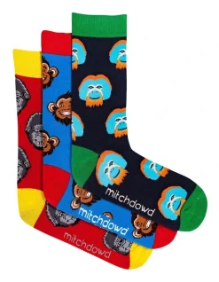 These stylish Mitch Dowd Men’s Monkey Face Crew Socks 3 Pack feature all over designs, contrast colour toe and heel and a double ribbed cuff. Great for everyday wear or the perfect gift idea