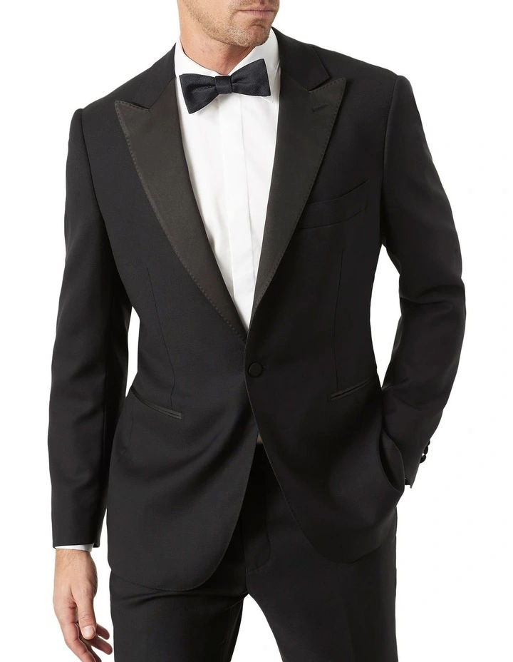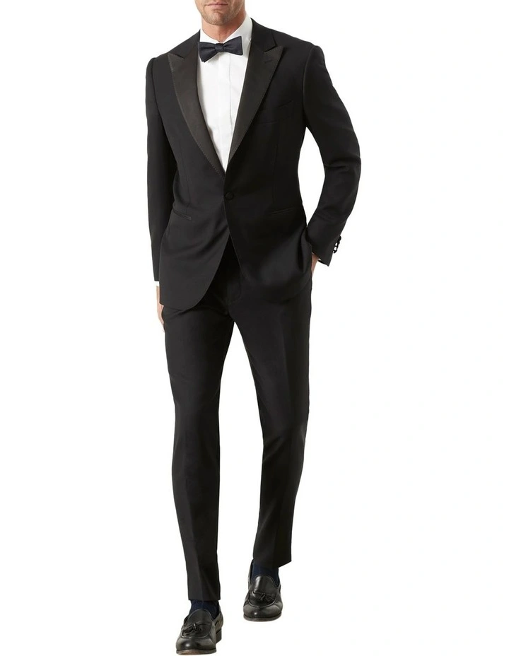 Features: Super 110s; Notch lapel; Welt pocket; Double jet pocket; Half canvas; Light shoulder padding; Covered buttons on jacket sleeves