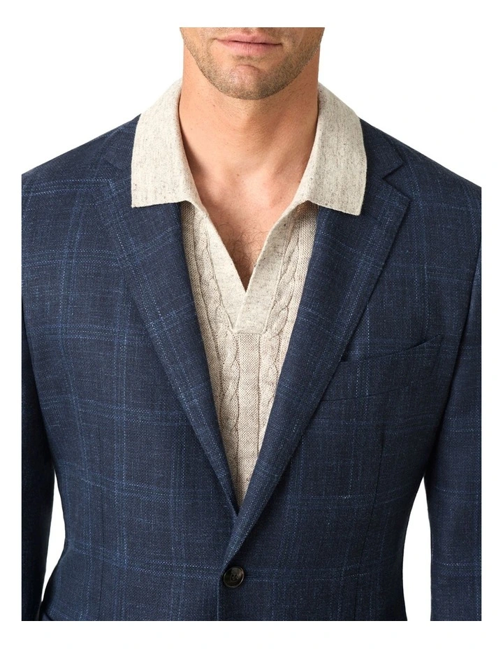 Our new Salter Jacket is the sports jacket to take you from work to play with ease. It’s crafted from a wool-linen blend, making it an all-year round staple, and is designed in a subtle dark navy/green check pattern that adds a bit of fun into the mix. It’s designed for a slim fit with a classic shoulder.