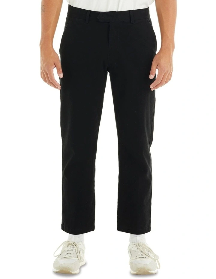 The Nana Judy Winston Pant in Black designed in a premium cotton stretch fabric with a tapered leg with a slight crop length finish. The Pant features a fixed waistband with zip and clasp closure, classic pocketing including a back sideseam carpenter pocket for design detail finishing with contrast cursive Nana Judy logo embroidered to the back.