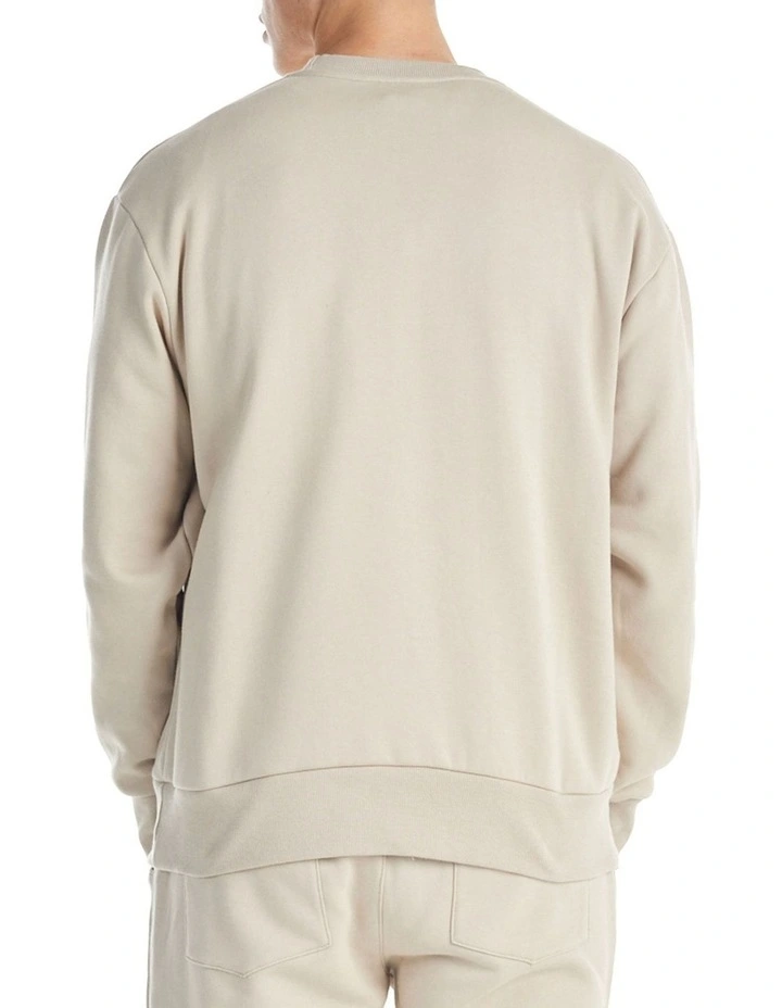 The nYATH Nana Judy Arthur Crew Sweater in a cotton blend fleece fabrication in Light Grey. The crew sweater features tonal logo embroidery down the sleeves, white waterproof zipper pockets at waist with centre front seam detail. Designed on a original crew neck sweater block with rib neck, cuff and hem finish.