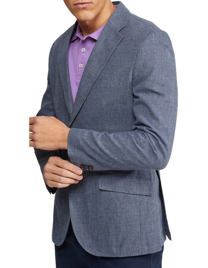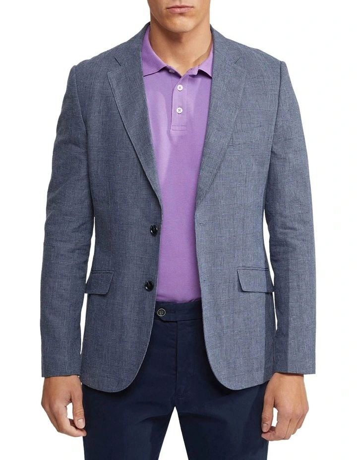 Smart casual style at its best, the Milton Linen Cotton Unlined Checked Blazer will elevate your weekend look. This dapper jacket is constructed from a lightweight linen cotton blend and cut in a slim fit. It is unlined making it perfect for the warmer months. It features a subtle check pattern, two side pockets, double button fastening and a chest pocket. Wear yours over a polo with chinos and sneakers to complete the look.