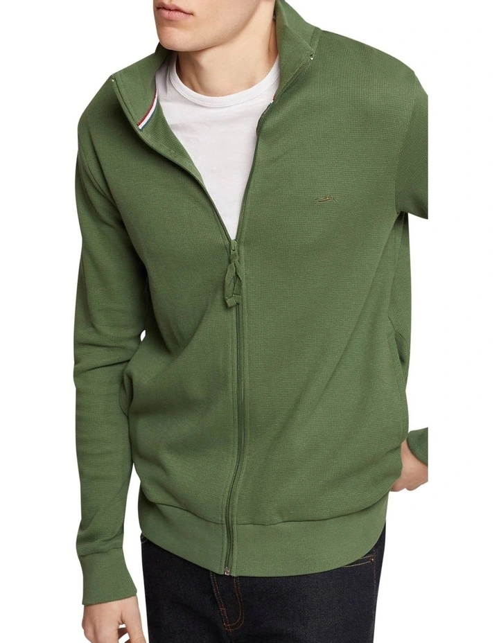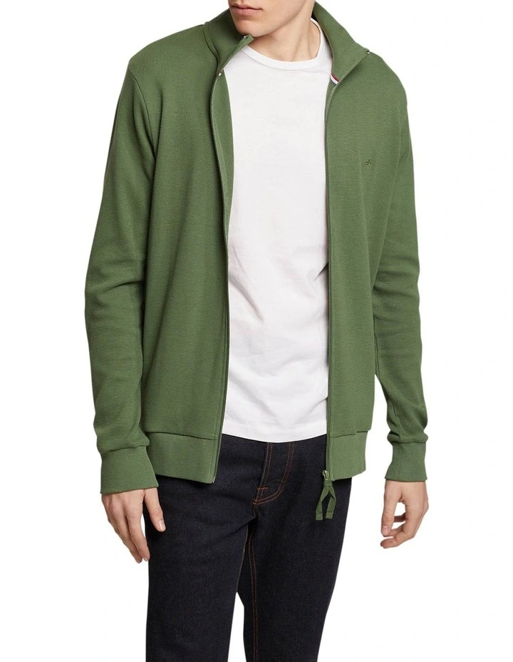 Update your off-duty look with the Tom Zip Up Waffle Knit. This stylish men’s knit is crafted from 100% organic cotton and cut in a slim fit. It features a stitched chest icon, zip front, high neckline and textured waffle weave. Wear it over a basic tee with jeans or shorts and sneakers for an easy weekend outfit.