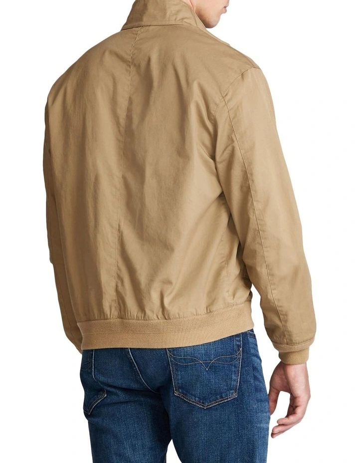 In lightweight cotton twill, this fuss-free jacket is the perfect transitional layer for morning commutes, weekend errands, and everything in between.Size medium has a 27″ front body length, a 26″ back body length, a 20″ shoulder, a 46″ chest, and a 36″ sleeve length. Sleeve length changes 1″ between sizes.Mockneck. Two-button throat latch. Full-zip front. Leather zipper pull.Long sleeves with ribbed cuffs.Two front waist buttoned pockets. Interior left waist pocket.Ribbed hem. Fully lined.Signature embroidered Pony at the left chest.Shell, ribbed trim, and body lining: cotton. Sleeve lining: nylon.Machine washable. Imported.Model is 6’1″/185 cm and wears a size medium.