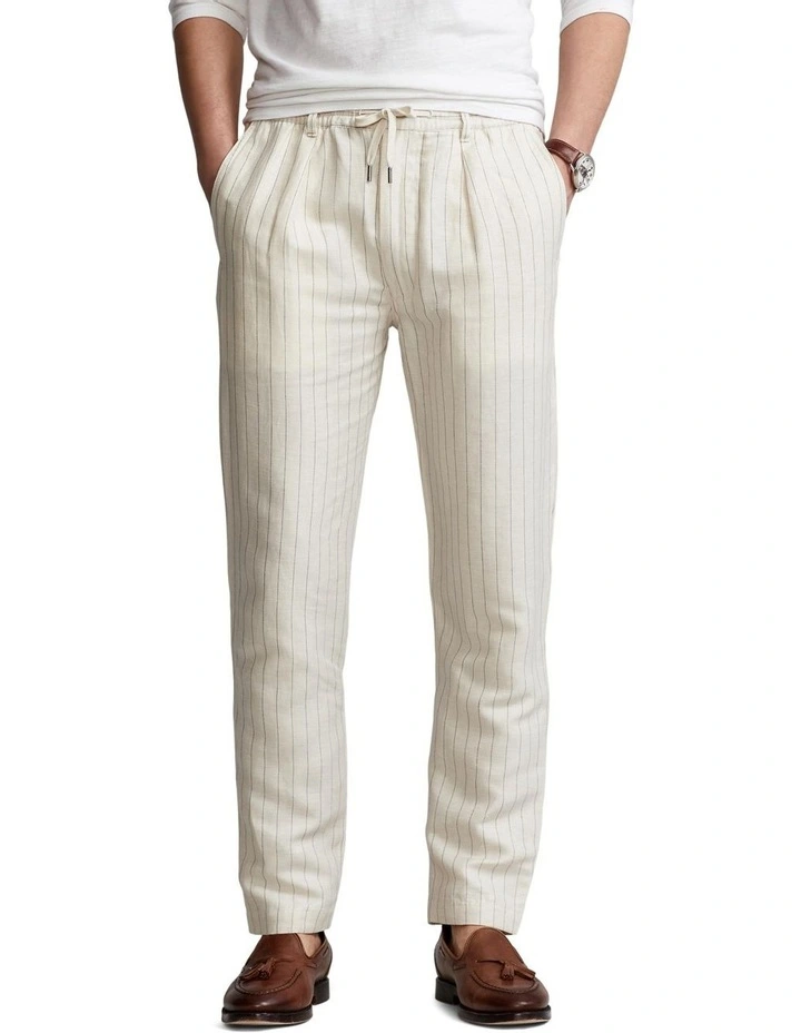 These linen-blend pants feature elements from our Polo Prepster shorts, like a drawstring waist and a hint of stretch, while their pinstripes nod to the elegance of Ralph Lauren tailored clothing.