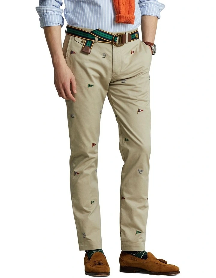 This version of our signature chino pants features an embroidered motif of nautical flags and sailing knots.