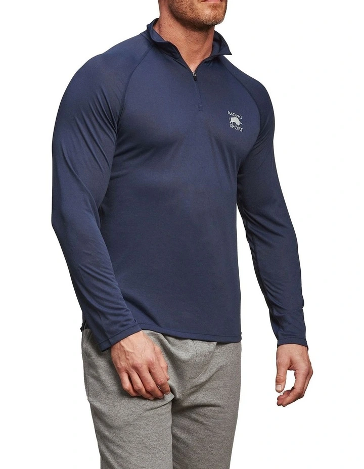 Keep cool and dry, during workouts, with this lightweight long sleeve performance top. Youll stay covered and comfy when pairing with the Raging Bull performance tees and leggings. With a quarter zip, this top is finished with the Raging Bull Sport branding and iconic bull to the chest.