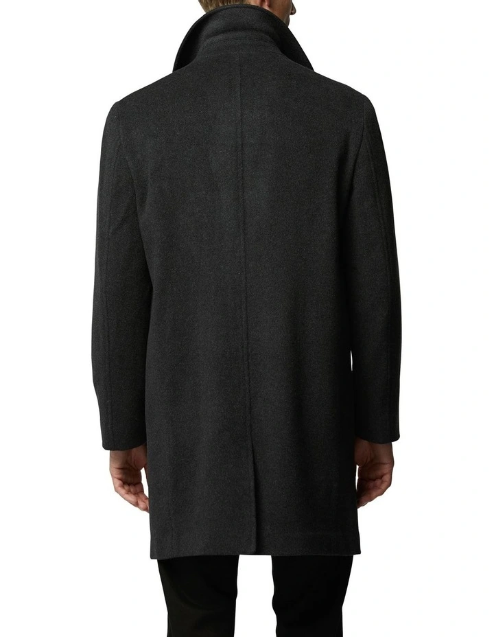 A wool cashmere car coat with a simple streamlined look. Versatile in its simplicity, the soft brushed texture is accented with a straight cut, classic tailored collar, and sharp shoulders. A soft-touch taffeta lines the coat.