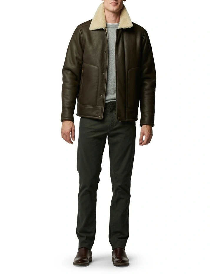 A statement in luxury, this premium leather jacket will look sharp with every outfit. Crafted from a top grade lamb skin, this full-grain leather jacket features a luxuriously rich brown colour with a shearling collar and interior. Featuring premium metal zips and front welt pockets, and lined with a soft-touch lining. Take care of it, and it will last decades longer than our two-year guarantee.