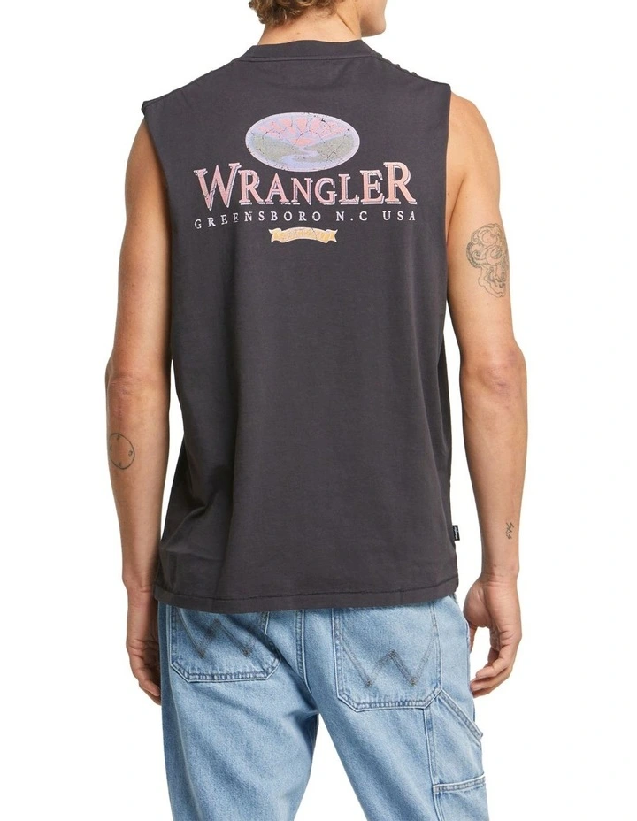 The Wrangler Sunrise Baggy Muscle Tee is a regular easy to wear muscle, made in 180gsm cotton jersey for a qualitive soft hand feel and drape. The Wrangler logo is a nostalgic nod to skate and surf brands of the 90’s. Pair back with your fave Wrangler shorts for a laid back summer look.